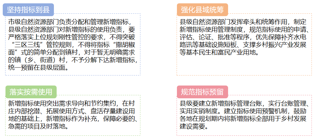 为切实加强国土空间规划实施管理,严格实施国土空间用途管制,精准发挥新增农村建设用地指标对乡村振兴支撑保障作用。陕西省自然资源厅于2024年12月下发了《关于规范国土空间规划中新增农村建设用地指标使用的指导意见》(试行),对新增农村建设用地指标使用提出了指导意见: